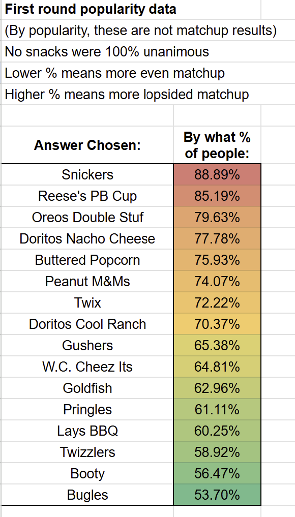 - 5 Closest bracket to perfect wins $100 and a package of the champion snack